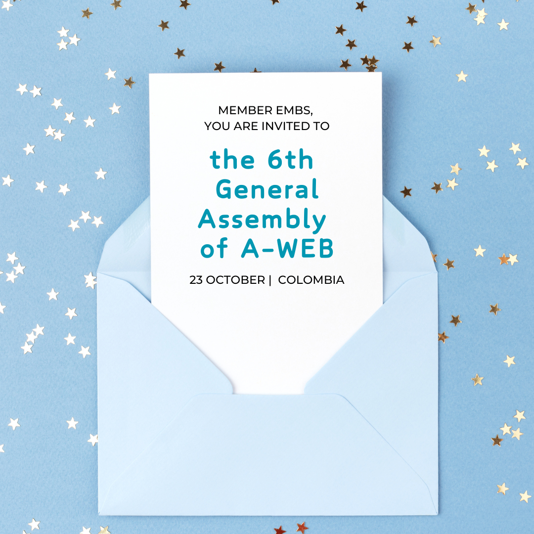 The A-WEB Secretariat, in collaboration with the National Civil Registry (RNEC) of the Republic of Colombia, the upcoming Chair of A-WEB, is pleased to inform our member EMBs that the 6th General Assembly, encompassing ALL Member EMBs, will be held on October 23, 2024, in the Republic of Colombia.